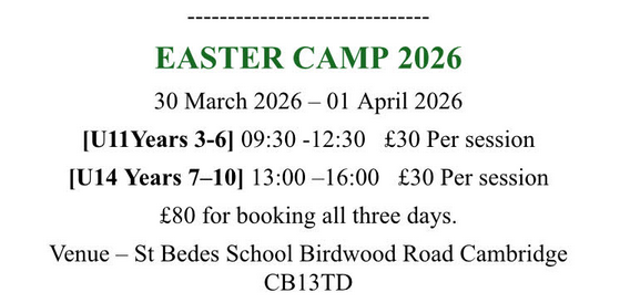 U11 current years 3-6 Time 09:30-12:30, U14 current years 7-10 Time 13:00-16:00